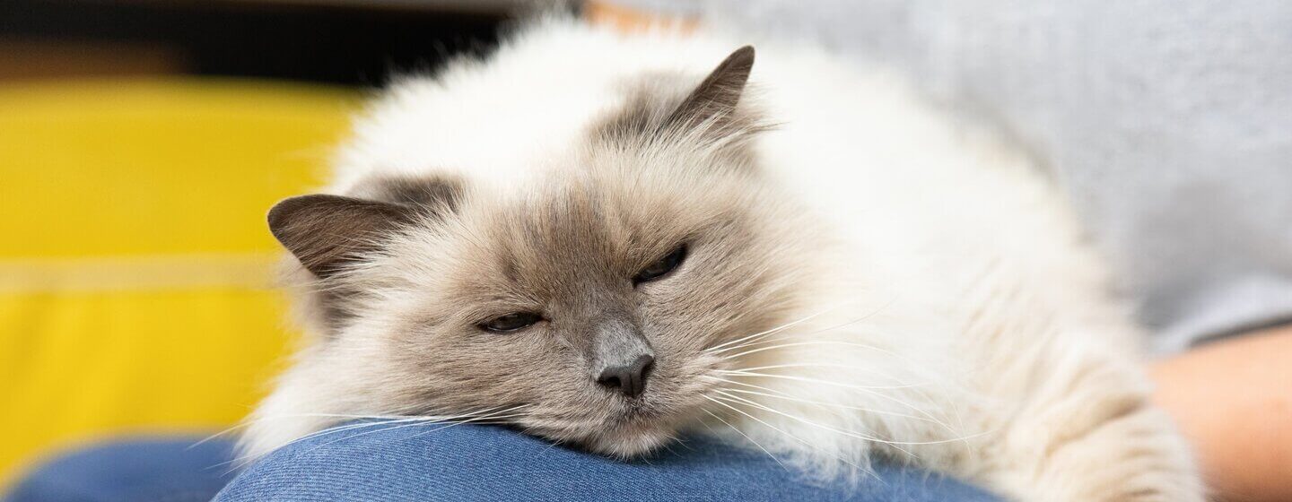 Your cat is an important part of your family, and we understand that it’s not nice to think of your fluffy companion getting older. As felines don’t get fine lines and wrinkles like us, the signs of old age in cats aren’t always obvious. Changes in your cat are most likely to start on the inside as they approach their golden years, and they will gradually age like we do. But there are a few tell-tale signs you should be aware of. We explore them, next. At what age is a cat considered senior? Although cats are considered to be of old age from when they reach 7 years old, some felines will be showing off their kitten-like antics well into their mature years. Because there’s no exact age when your pet changes into a senior cat, you have to look out for particular signs instead. Signs of an old cat If your cat is not a spring chicken anymore, it’s natural to wonder what to expect when your pet becomes elderly and whether that moment hasn’t actually arrived. Elderly cats are very similar to humans in old age and will experience changes in their physical and mental abilities as years go by. Here are some of the most common signs that your cat is now a senior: Loss of agility One of the first things you will notice is a lower level of energy than usual. Of course, this could be also due to a medical problem, so it’s always best to check with your vet whenever you notice big changes in your cat’s behaviour. But expect your cat to enjoy living life in the slow lane as they get closer to senior status. Changes in their play time routine Play time for elderly cats will likely be comprised of shorter sessions, less energetic chases and more walking around the house or climbing cat trees. Depending on your cat’s health, you may need to adjust some of the usual games and bring them down to a slower pace, but don’t think play time is over once your feline reaches the golden years. Your vet will be able to advise on a level of activity that is suitable for your pet and will keep them well-entertained no matter the age. Different sleeping patterns Changes in the sleeping routine can also be a sign of an old cat. Whether your cat is waking up and vocalising in the middle of the night, or on the contrary, starts enjoying a shut eye more than usual, a cat’s sleeping habits could be the giveaway for old age. Increased disorientation Cats are not particularly aloof creatures. Their feline DNA keeps them in tune with their environment well into their senior years. So when all of a sudden your cat starts getting confused while doing simple tasks such as finding their food bowl or getting to their bed, this disorientation can be caused by a cognitive decline relate to ageing in elderly cats. In this case as well it is recommended to discuss the unusual behaviour with the vet. Changes in body condition and weight Weight fluctuations can also be a sign that your cat should start getting the senior treatment. Usually their metabolism slows down and as the amount of exercise decreases with age, you can expect to see your feline frame getting larger than usual. On the other end of the spectrum, some cats might suffer weight loss due to dental problems, also common in old age. You can check your cat’s body condition at home using these simple steps and get plenty of clues about your pet’s health and weight. Changes in behaviour You can find many signs of an old cat in their behaviour as well. They get a bit rusty when it comes to using the litter box and the frequency of accidents increases. They might not groom themselves as thorough as before. Or might even become moodier and less tolerant of changes in their environment. Many cats become less able to cope with stress as they age, so if you want to find out more about how you can manage cat anxiety, our guide is a good start.