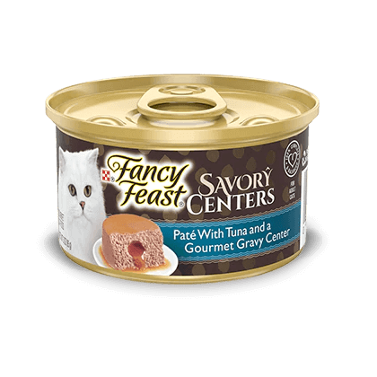 - Delight your cat with the best of both worlds with FANCY FEAST Savory Centers Paté with Tuna