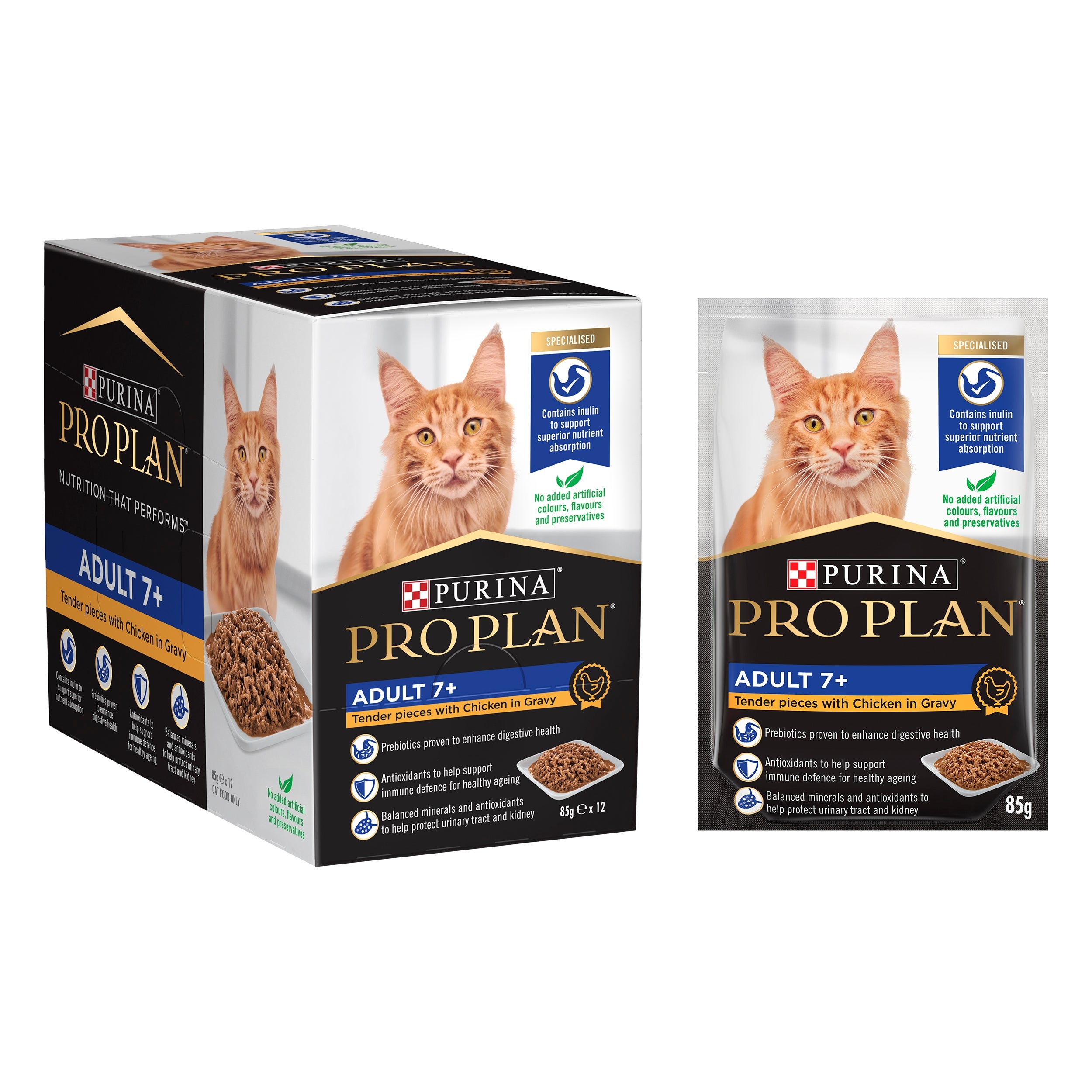 - Tender pieces with chicken in gravy for adult cats aged 7+ from PRO PLAN®