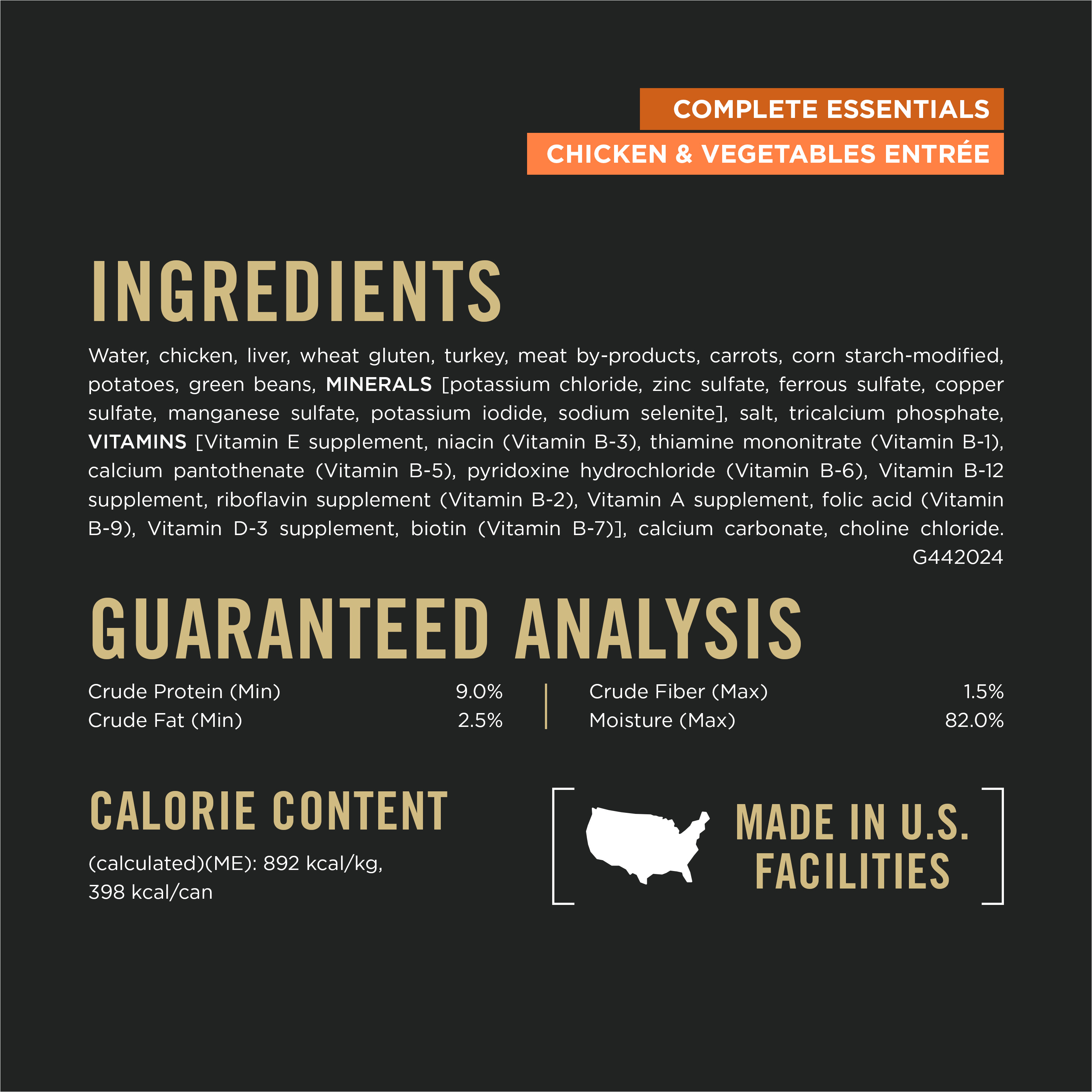 Purina Pro Plan Complete Essentials Adult Chicken & Vegetables Entrée Slices in Gravy wet formula is specially formulated to meet the needs of healthy adult dogs. High in protein to maintain lean muscle. And made with real chicken for a taste dogs love.