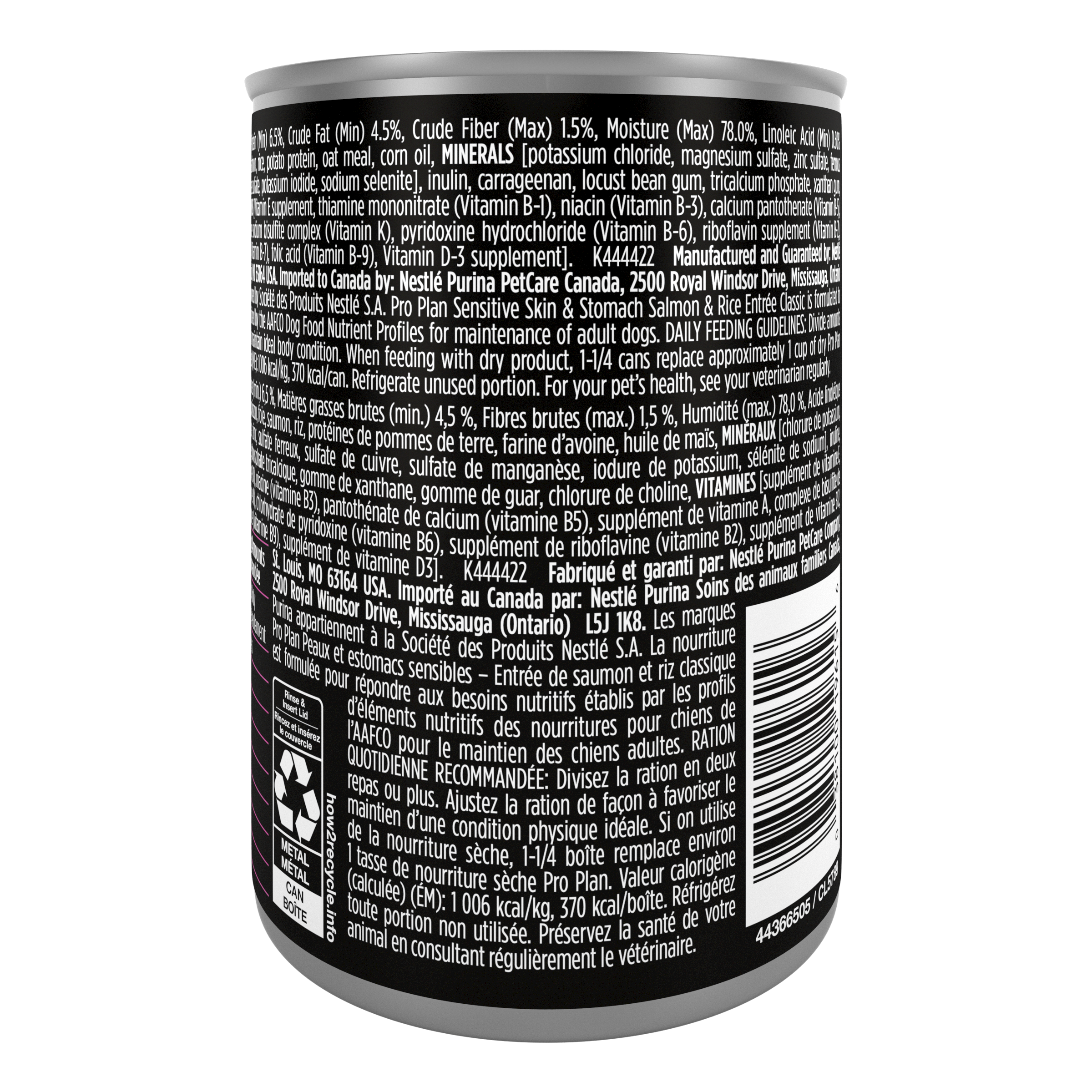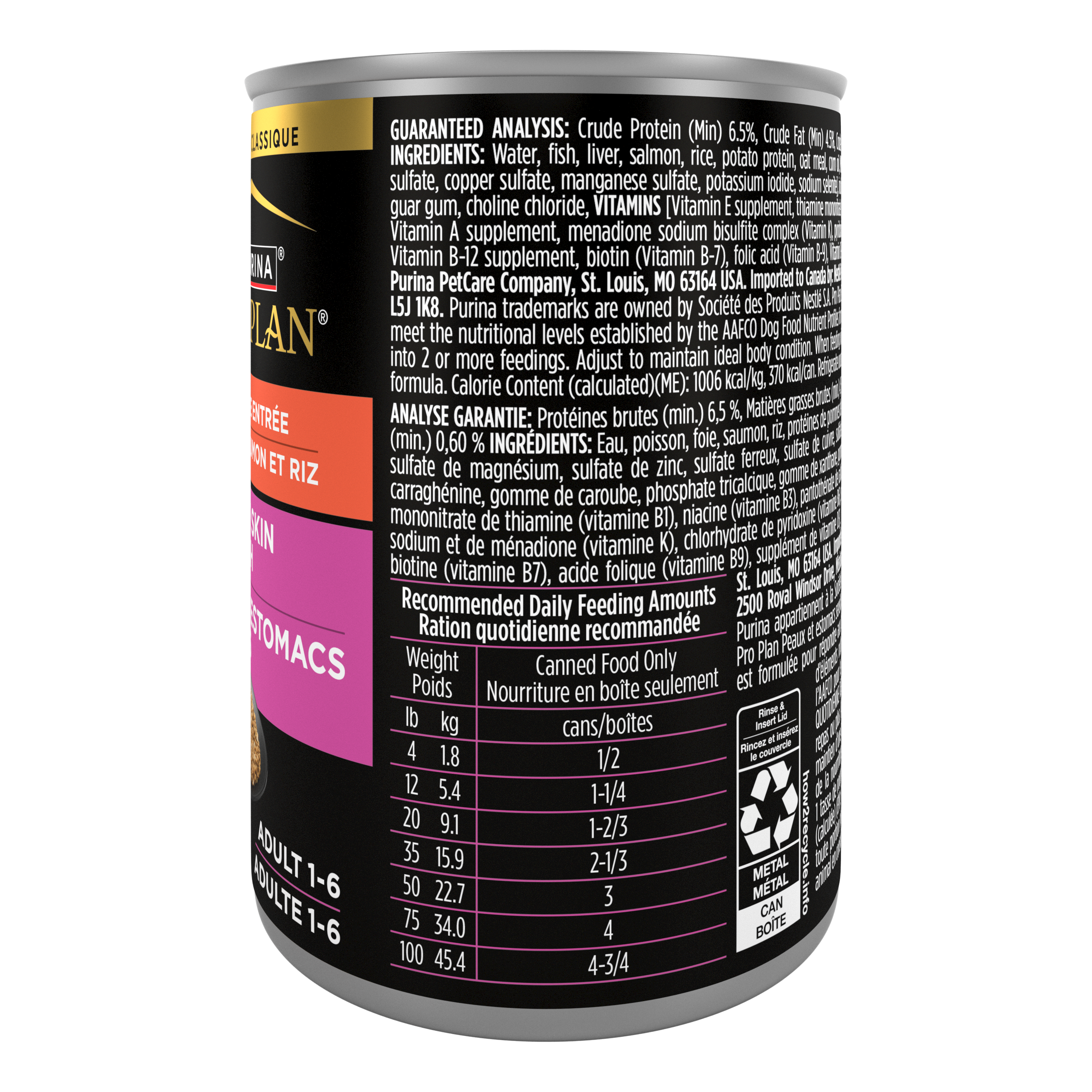- PRO PLAN Adult Classic Sensitive Skin & Stomach Salmon & Rice Wet Dog Food is advanced nutrition that is 100% complete and balanced with scientifically proven benefits to help give your pet the best possible nutrition to lead a long, healthy life.