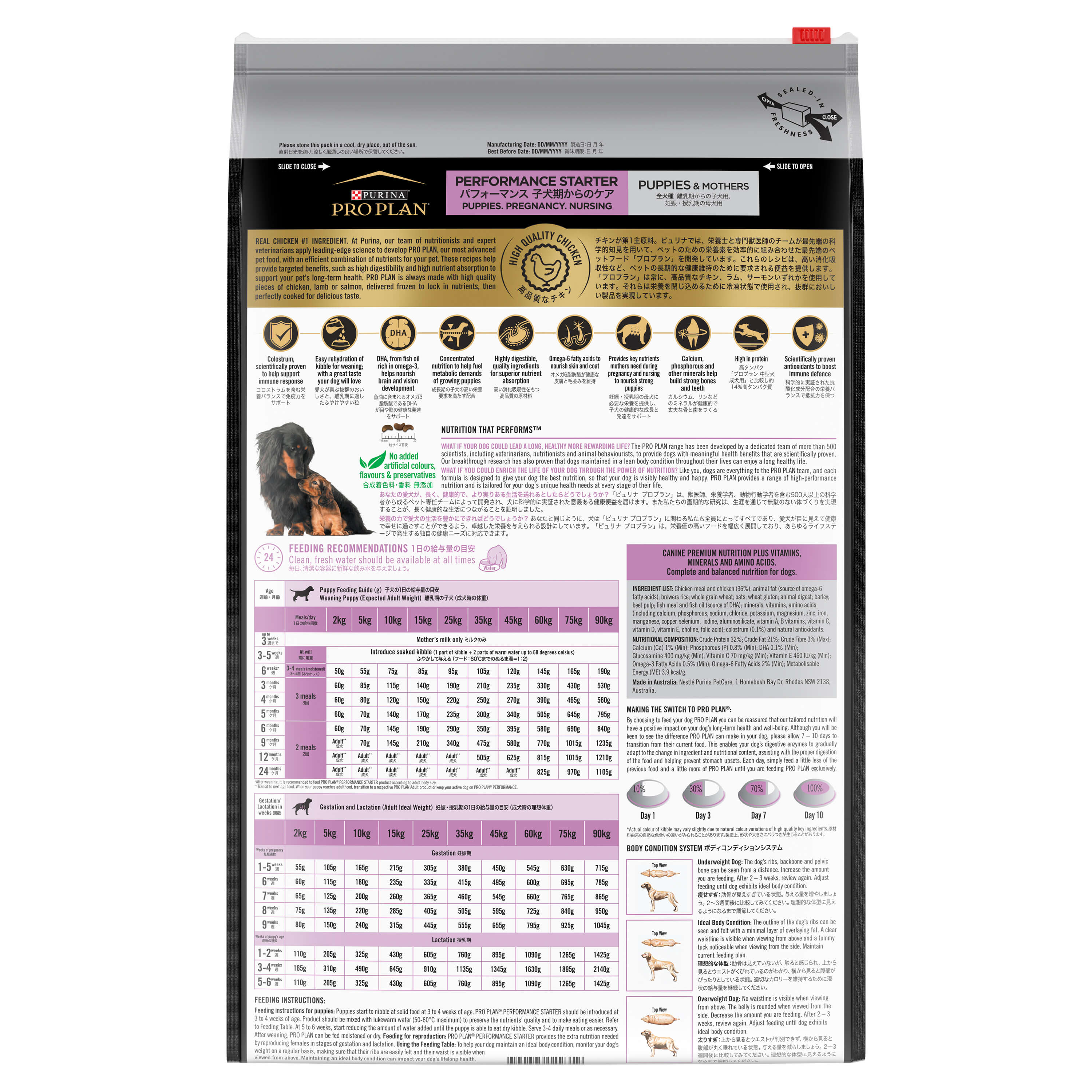 Feeding for reproduction: PRO PLAN® PERFORMANCE STARTER provides the extra nutrition needed by reproducing females in stages of gestation and lactation.