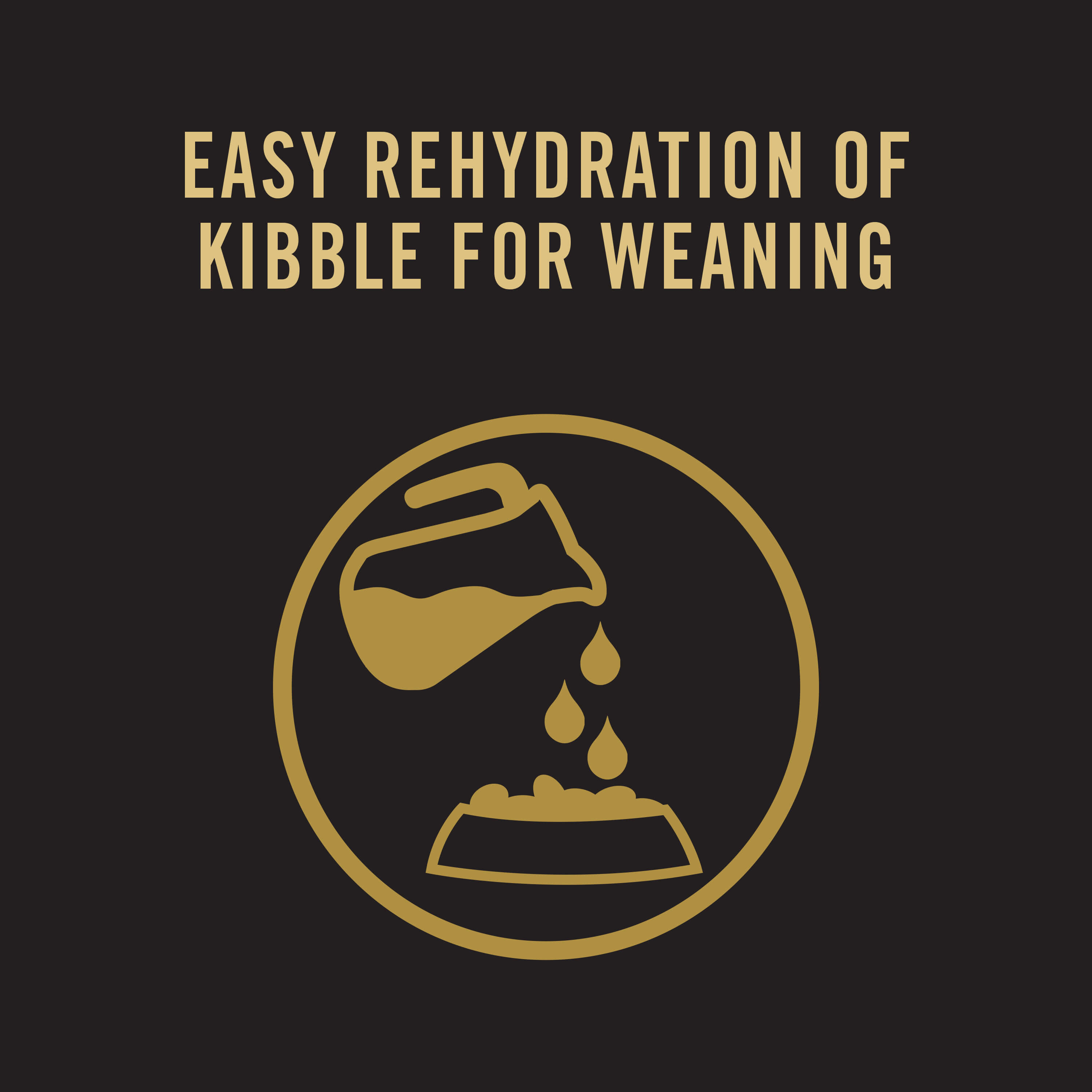 Feeding for puppies: Puppies start to nibble at solid food at 3 to 4 weeks old. PRO PLAN® PERFORMANCE STARTER should be introduced at 3 to 4 weeks of age. Product should be mixed with lukewarm water (50-60°C maximum) to preserve the nutrients' quality and to make eating easier. Refer to Feeding Table. At 5 to 6 weeks, start reducing the amount of water added until the puppy is able to eat dry kibble. Serve 3-4 daily meals or as necessary. After weaning, PRO PLAN can be fed moistened or dry.