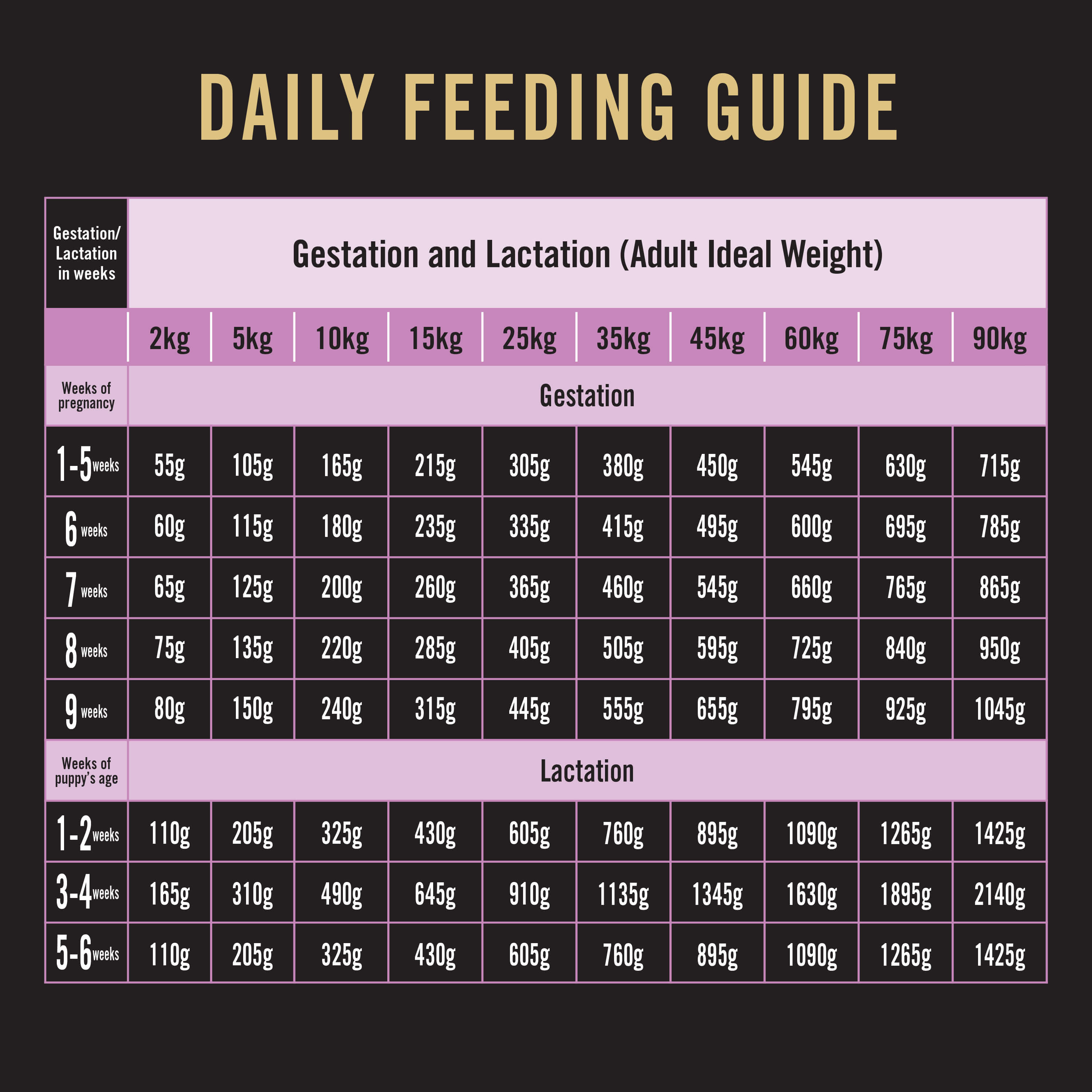 Gestation and Lactation (Adult Ideal Weight) |