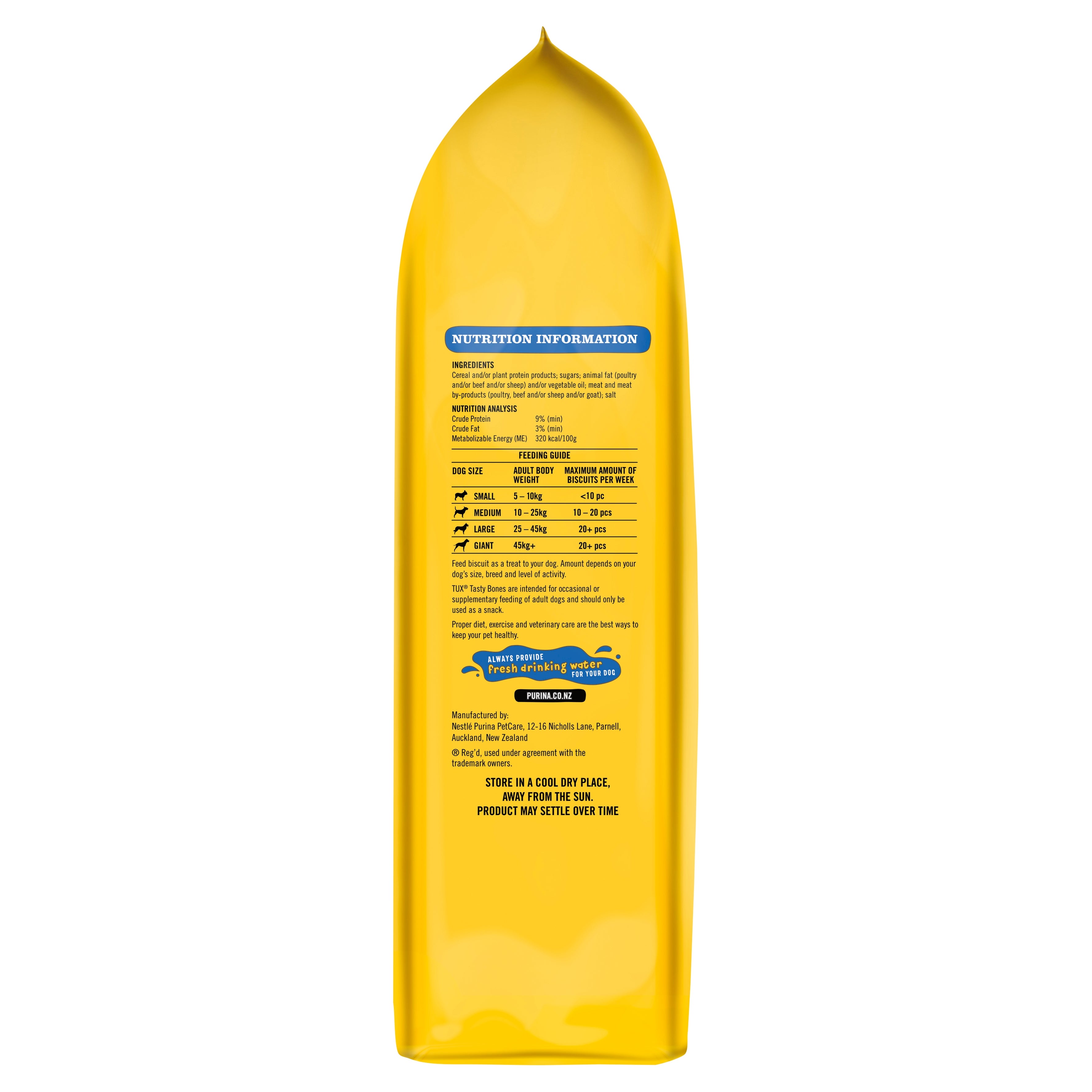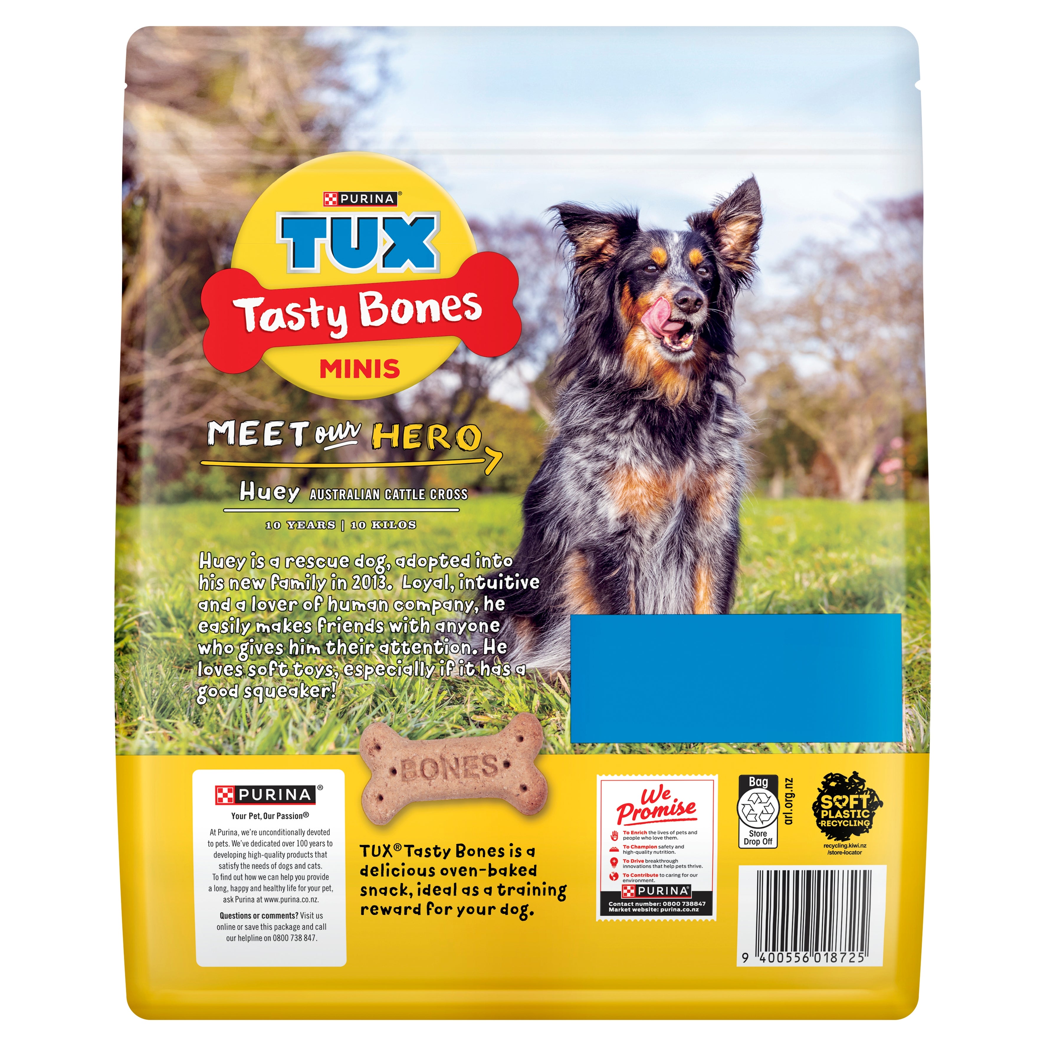 TUX Tasty Bones Minis dog treat is a delicious oven-baked snack, ideal as a training reward for your dog. Baked right here in New Zealand with real New Zealand chicken, free from added artificial colours, flavours and preservatives, it’s the perfect treat for training and reward for your adult dog.