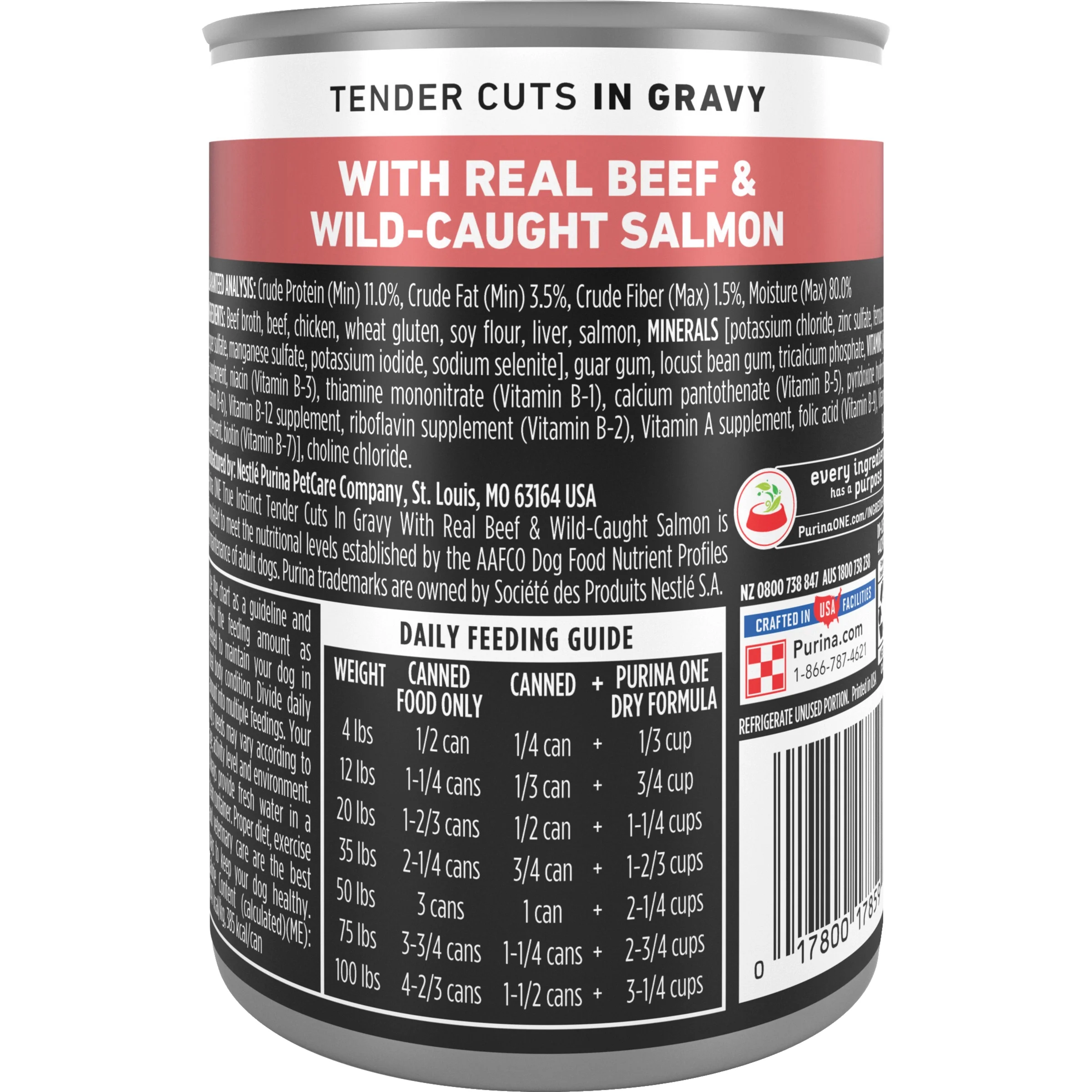 No matter how far science advances us, we always look to nature to inspire us. Purina ONE® formulas combine nature and research for results you can see in your dog. Thanks to a SmartBlend® of high-quality ingredients, Purina ONE® True Instinct Tender Cuts in Gravy Dog Food Formula With Real Beef & Wild-Caught Salmon nurtures your dog’s whole-body health. It’s also made with real beef, and the great taste will keep your dog coming back meal after meal. Purina ONE® wet dog food is made with no poultry by-products, and is a great way to add texture and variety to mealtime.