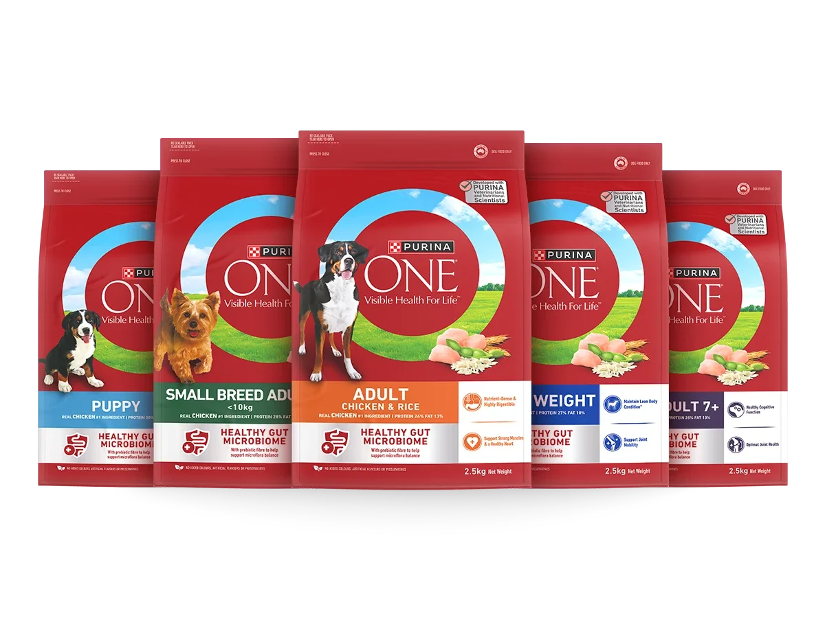Purina ONE® is made with high-quality ingredients to support your dog’s health. Each product label includes a full ingredient list, including the percentage of the named protein, as required by the Australian Standard for Manufacturing and Marketing Pet Food (AS5812:2023). Our recipes may also include wholegrain wheat, barley, sorghum and rice, supported with essential nutrients and prebiotic fibre.
